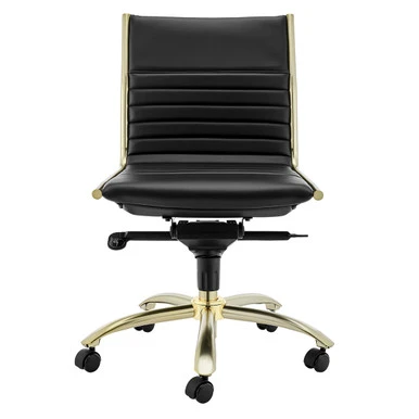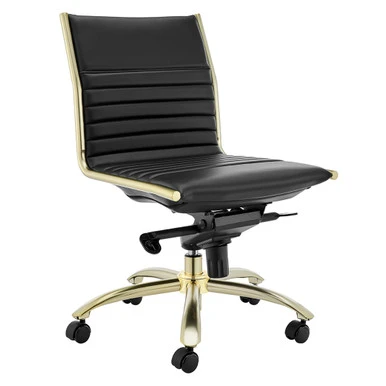 Designed with a brushed gold tone frame and channeled faux-leather upholstery, this desk chair brings both style and function to the home office. Constructed in one piece, its seat and back interior is wrapped in flat bungie banding for all-day comfort, while casters make the chair easy to move without damaging your floors.