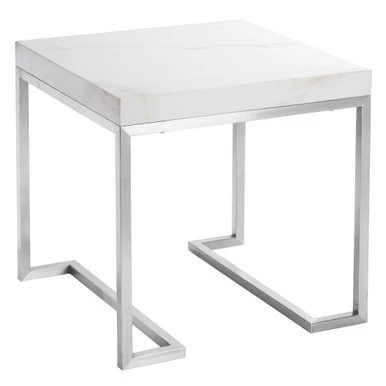 Handmade by skilled craftsmen, our Gianna collection adds architectural luxe to your most inviting spaces. Topped with faux white marble, while its open stainless steel frame adds support below.