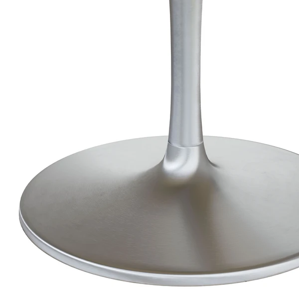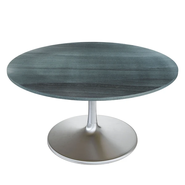 The Madra Dining Table 60″ has a raw marble top with a steel base. This table looks great in any modern glam, or deco dining area.