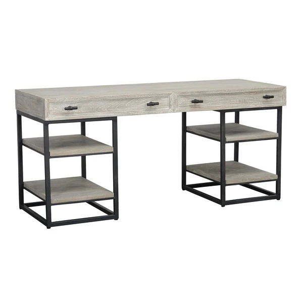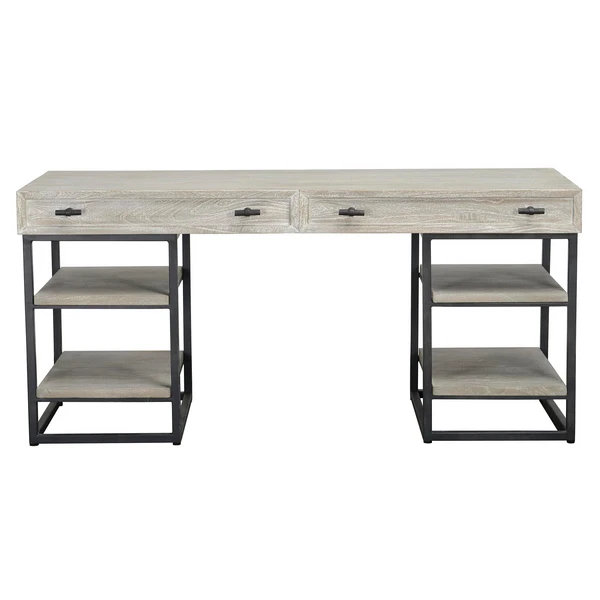 Elegance in a desk. Round out your office with a whitewash finish that still manages to be edgy thanks to dark metal accents (and create more room for storage).