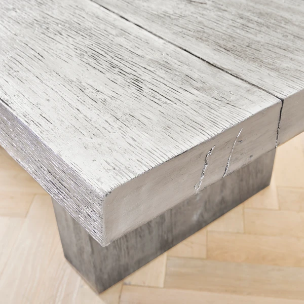Our Timber Dining Table is constructed of resin which is cast from reclaimed old oak beams from the Baguio region of the Philippines originally used as railroad tracks. A multi-step, hand-applied process is used to achieve the luster.